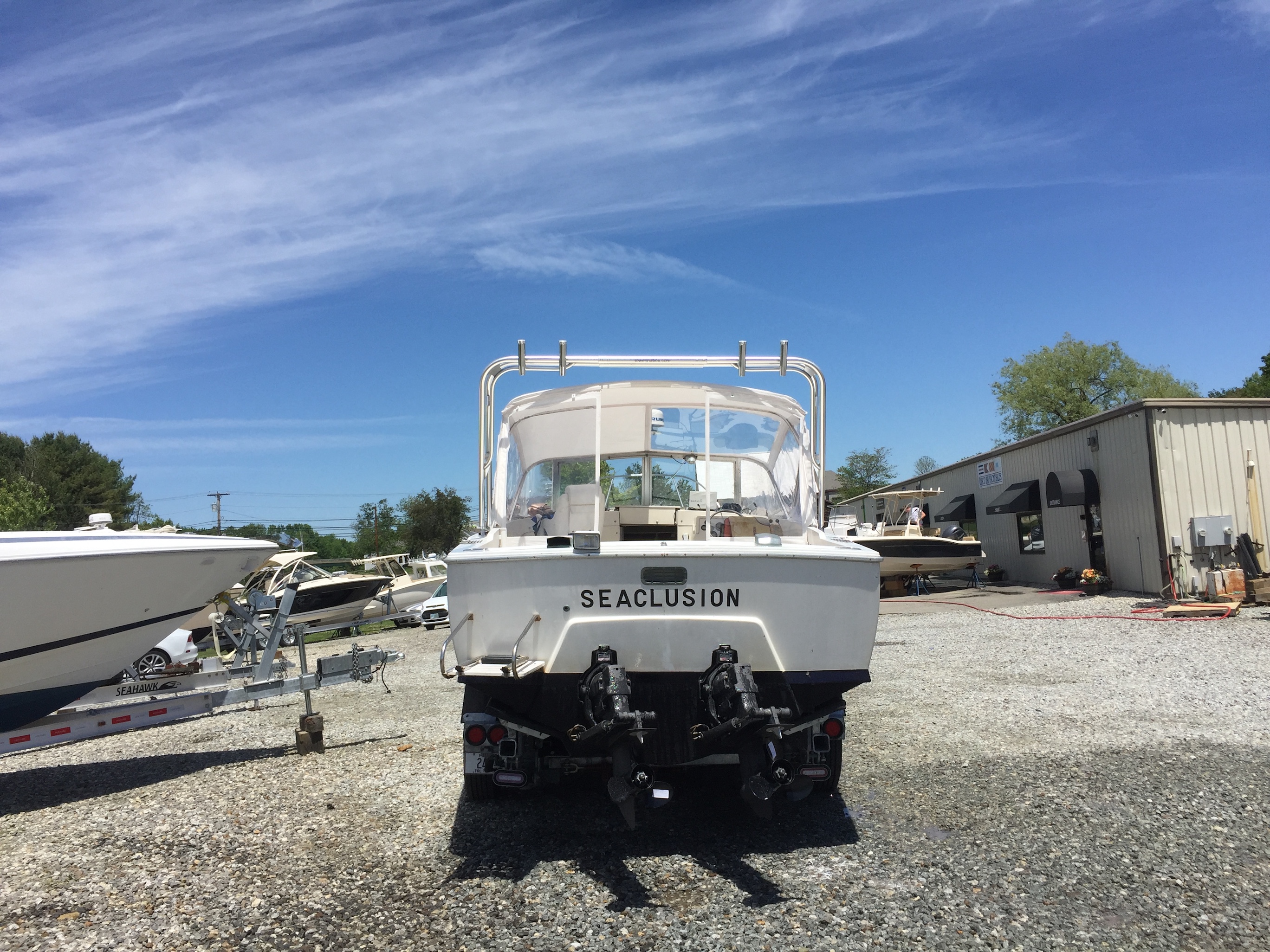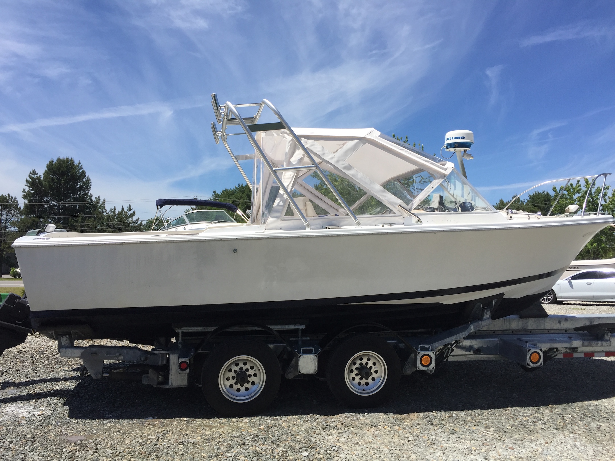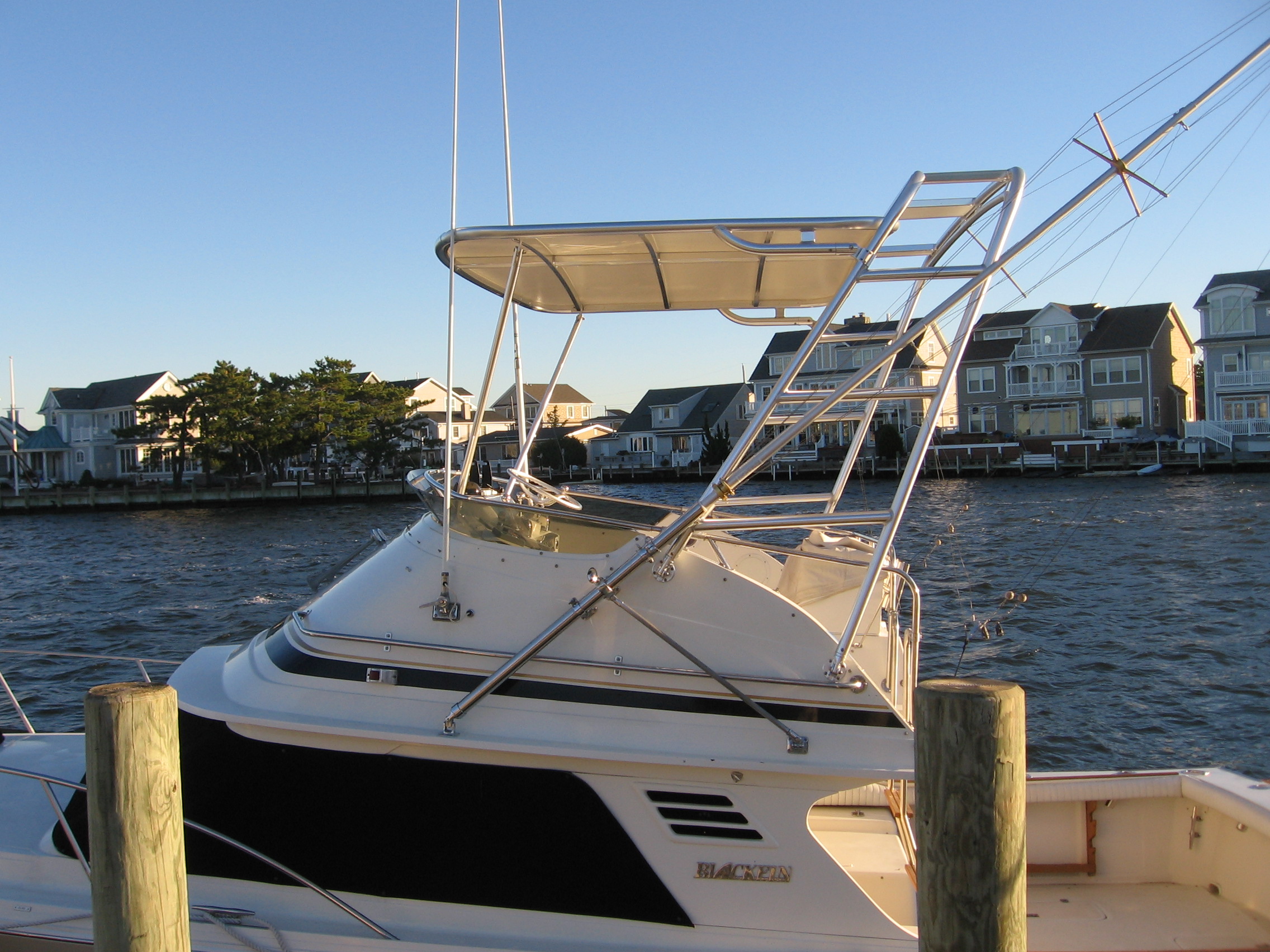 Arch style hardtop and aft bridge rail with rod holders